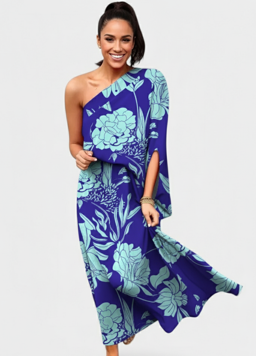 El vestido Carlena destaca por su diseño romántico y favorecedor. Con un escote de un hombro y caída fluida, es ideal para días cálidos o escapadas elegantes.